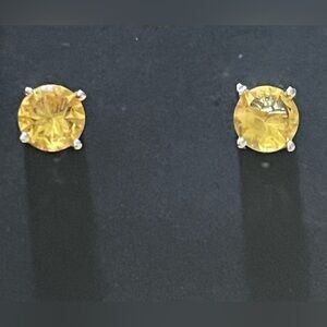Elegant Silver tone Pierced Yellow Stud Earrings