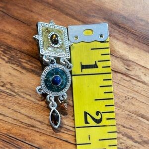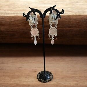 Elegant Silver tone and Enamel Dangle Clip On Earrings *NWOT*