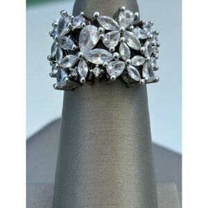 Elegant Silver-Tone Zirconia Cluster Statement Ring 7