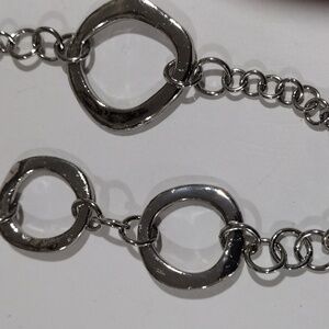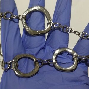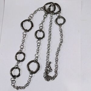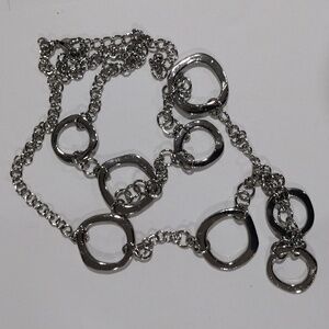 Create a statement with this elegant silver-tone long necklace showcasing bold hoop designs. A perfect complement to any outfit, this women's fashion jewelry piece is stylish, on-trend, and versatile.