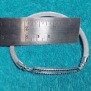 This elegant silver and black bracelet adds a touch of sophistication to any outfit. Perfect for any occasion.