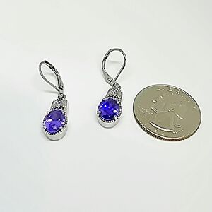 Add a touch of elegance with these Simulated Blue Diamond Lever Back Earrings in Stainless Steel 6.90 ctw purple and silver drop earrings. Perfect for any occasion. Gift box included.