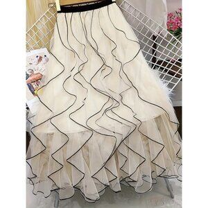 [Elegant Skirt] Polyester Elegant Layered Mesh High-Low Skirt | Solid Color, Mac