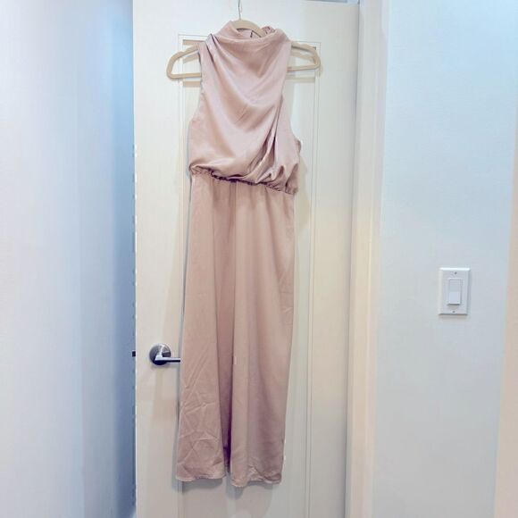 This elegant sleeveless dress in a soft cream color is perfect for any occasion. Its simple yet sophisticated design makes it a versatile addition to your wardrobe.