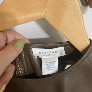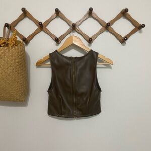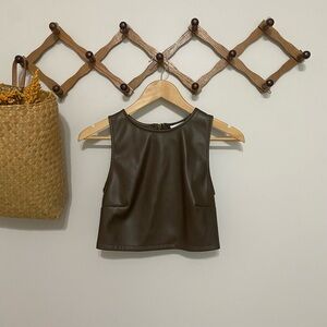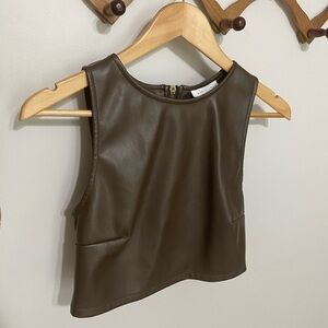 Discover elegance with this sleek sleeveless faux leather tank top. Perfect for adding a touch of sophistication to any outfit.