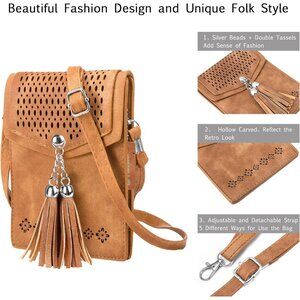 Elegant Small Crossbody Bag with Tassel — a chic, vintage-inspired accessory perfect for everyday use. This stylish bag is designed to hold your phone (up to 6.5 inches) with ease and includes multiple pockets for your cards, cash, and essentials.