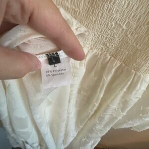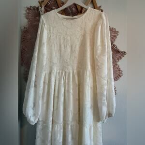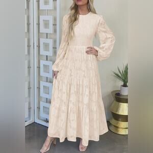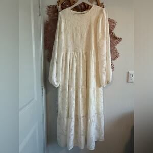 Elegant Smocked Cream Long Sleeve Floral Maxi Dress L