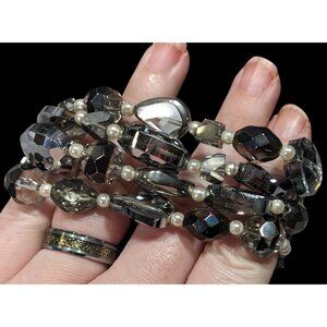 Elevate your style with this elegant stretch bracelet, featuring smokey glass beads and faux pearls layered for a sophisticated look. Perfect for any occasion, this bracelet offers a comfortable fit and a touch of glamour to your outfit.