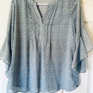 Elegant Soft Blue Floral Women's Blouse. Like new