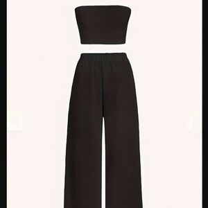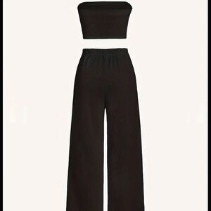 Elegant Solid Two-piece Pants Set, Sleeveless Crop Tube Top & Skinny High Waist