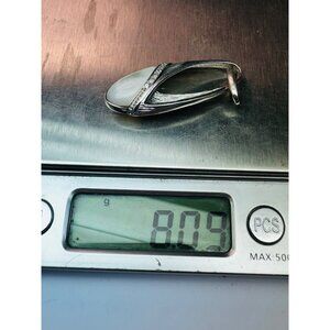 This brand-new sterling silver pendant features a sleek and modern design, showcasing a luminous mother-of-pearl centerpiece accentuated by a sparkling row of white crystals. The textured silver detailing wraps gracefully around the oval-shaped pearl, adding depth and sophistication. Perfect for any chain, this timeless piece weighs 8.09 grams and is hallmarked CI 925 for authenticity. A stunning accessory to elevate your jewelry collection or a thoughtful gift for someone special. Chain not included.
