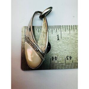 • Elegant Sterling Silver 925 Mother of Pearl Pendant with White Crystals, 8.09g, No Chain