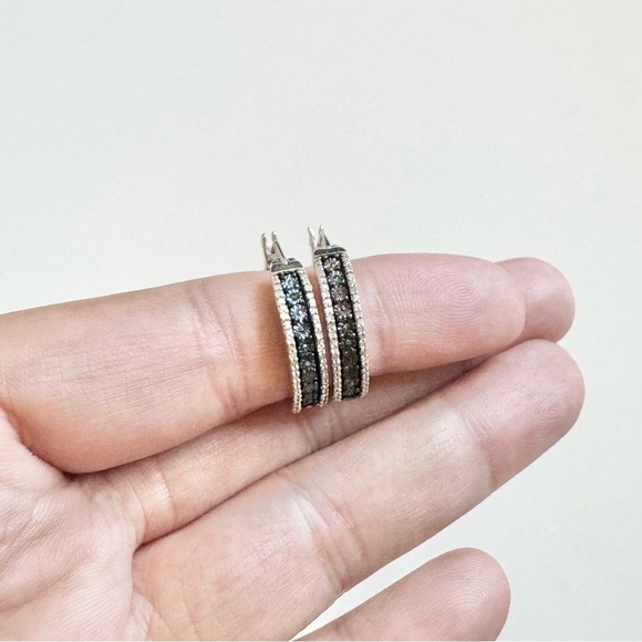 Elegant Sterling Silver 925 and Black Hoop Earrings