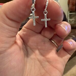 These elegant silver cross earrings add a touch of sophistication to any outfit. Perfect for any occasion.