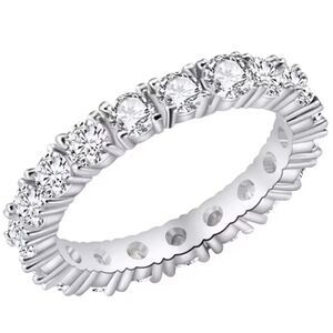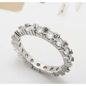 Keywords: eternity band, sterling silver ring, cubic zirconia ring, wedding band, anniversary ring, promise ring, stackable ring, crystal ring, engagement ring, bridal jewelry, fashion ring, silver eternity band