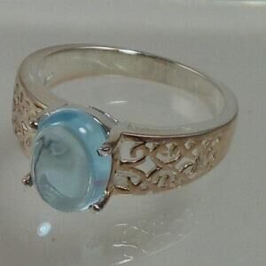 - Vintage Sterling Silver Filigree Blue Topaz Ring