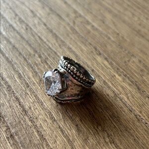 This stunning sterling silver ring features a dazzling crystal accent, perfect for adding a touch of elegance to any outfit. Its intricate design and shimmering details make it a must-have accessory. Stamped 925. Size 8.