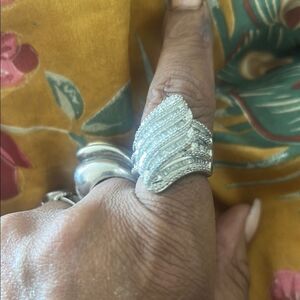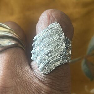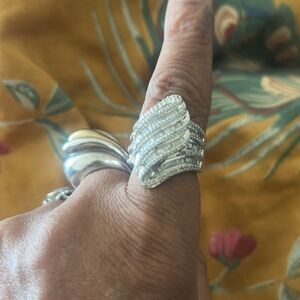 VINTAGE DESIGNER SJ 925 STERLING SILVER COCKTAIL GENUINE DIAMOND RING