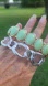 This stunning stretch bracelet lot features a chic combination of silver and green & gold tones, perfect for adding a touch of elegance to any outfit. The intricate design and vibrant colors make it a must-have accessory. The silver tone bracelet is signed Napier the green and gold tone I do not see a signature on. ( the ring in background is not part of the lot)
