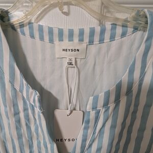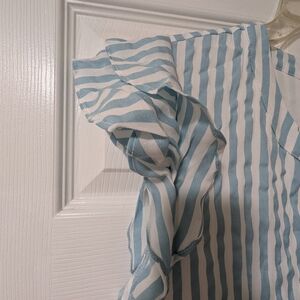 Step out in style with this elegant blue and white striped mini dress. Perfect for any occasion, it features charming ruffle sleeves and a flattering fit.