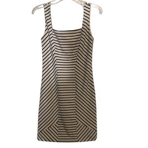 Elevate your wardrobe with this elegant sleeveless mini dress, featuring a classic black and white stripe design. Perfect for any occasion. Size S. Hand washable.