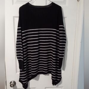 Elevate your wardrobe with this elegant striped sweater. Featuring a classic crew neck, it's perfect for versatile styling. The black and white design adds a timeless touch to any outfit.