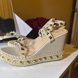 Step up your fashion game with these elegant studded wedge sandals. Featuring a chic design, they are perfect for any stylish occasion.