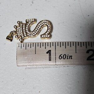 Elegant Stylish S Initial Crown Pendant Charm Cubic Zirconia Gold-Plated Jewelry