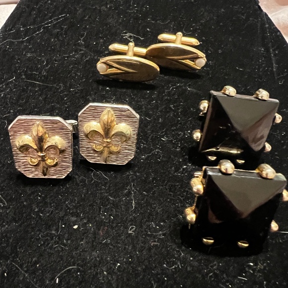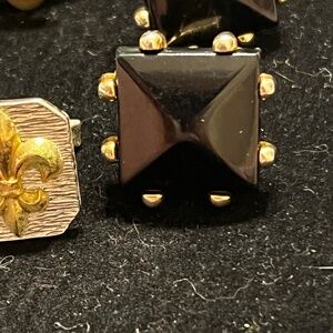 Elevate your formal attire with this elegant collection of vintage Swank cufflinks. Featuring classic designs such as the Fleur-de-Lis and bold onyx stones, these cufflinks embody timeless style and sophistication. Each piece is stamped with the iconic Swank brand, known for its quality and craftsmanship in men's accessories. Perfect for special occasions, business meetings, or adding a touch of vintage flair to your everyday look, this set is a must-have for collectors and fashion-forward gentlemen.
