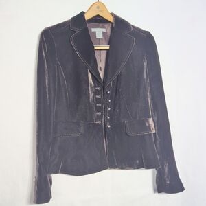 Elegant Sz 4 Brown Silk Blend Velvet Women's Jacket Metal Buttons