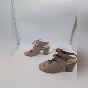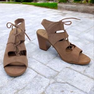 Elegant Tan Block Heel Sandals Sz 7.5 Memory Foam