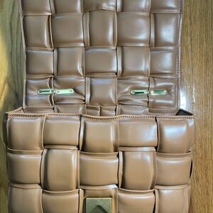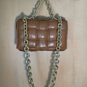 This stylish tan shoulder bag features a luxurious chain strap, perfect for any occasion. Its elegant design makes it a must-have accessory.