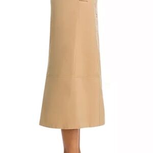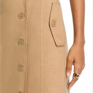 This elegant tan skirt features a stylish double-breasted design. Perfect for any occasion, it offers a sophisticated look with its classic color.