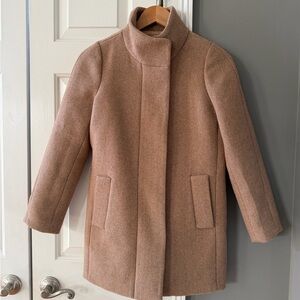 Stay warm and stylish with this elegant tan wool car coat. Perfect for any occasion.
