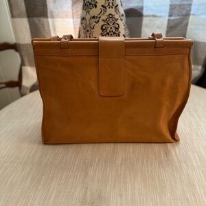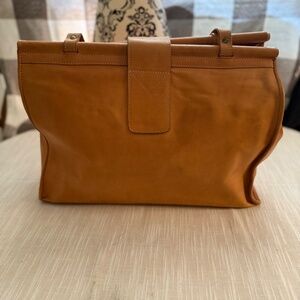 This elegant tan leather tote bag is perfect for any occasion. Its sleek design and durable material make it a must-have accessory.