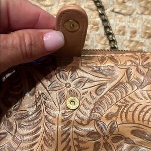 This elegant tan leather bag features intricate detailing, perfect for adding a touch of sophistication to any outfit. Its versatile design makes it ideal for both casual and formal occasions.