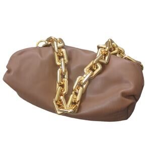 Elegant Tan Purse with Gold Chain Detail – Chic Brown & Gold Accent Bag