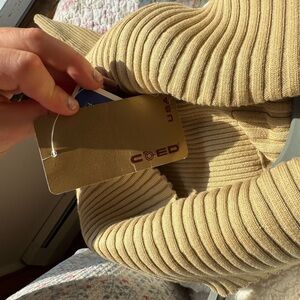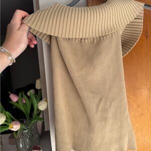 Stay cozy and stylish with this elegant tan ribbed sweater. Perfect for any occasion.