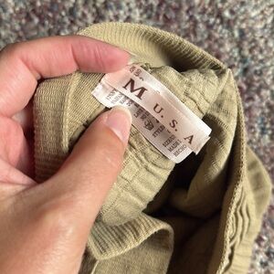 Elegant Tan Ruched Textile Bodycon Elastic Stretchy Pencil Midi Skirt size M