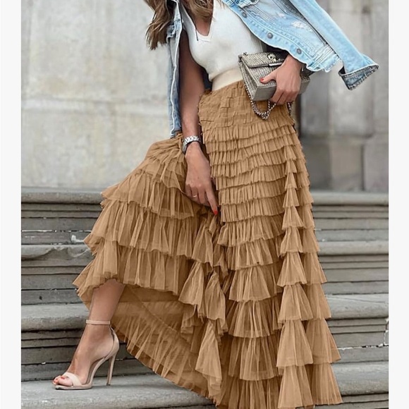 Women's Long Maxi Tulle Skirts A Line Ruffle High Waisted Tiered Layered Mesh Tutu Skirt Petticoat. 38” length.