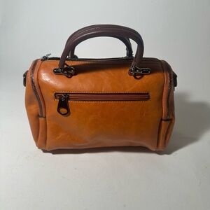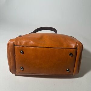 Elegant Tan and Brown Leather Satchel with Tassel Detail