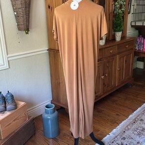 Elegant Tan V-Neck Maxi Dress New With Tags Size Large