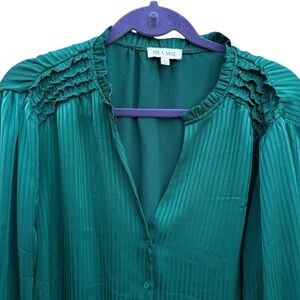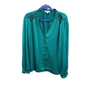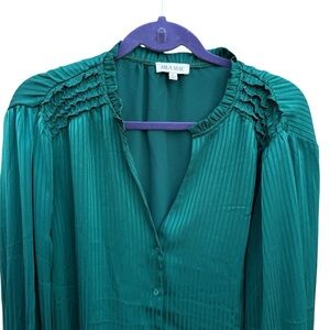 Discover elegance with this stunning teal blouse. Perfect for any occasion, it offers a sophisticated look with its rich color and stylish design.