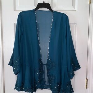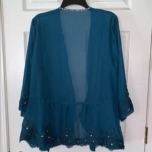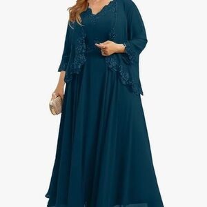 This elegant teal 2 piece evening gown is perfect for any special occasion. The flowing A-line design offers a flattering fit, while the intricate lace detailing adds a touch of sophistication. Ideal for making a statement, this dress combines style and comfort effortlessly. Shoulder to hem approximately 58 inches Pit to pit approximately 19.5 inches Waist approximately 18 inches Wedding Mother of the Bride Prom