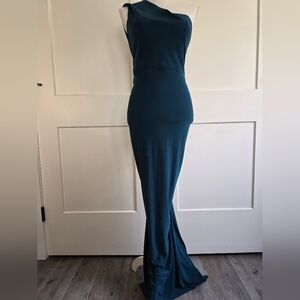 Elegant Teal Evening GownXSCAPE Maxi Dress Column Gown One Shoulder Women’s