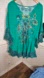 Discover elegance with this teal blouse adorned with a beautiful floral design. Ideal for adding a touch of sophistication to your wardrobe.