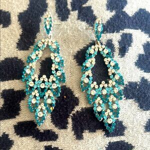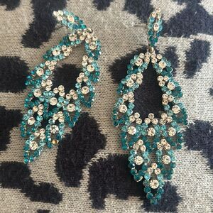 Elegant Teal and Silver Rhinestone Dangle Earrings