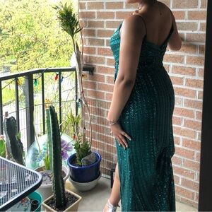 Step into elegance with this stunning teal/Emerald Green evening gown. Perfect for prom or any special occasion, this dress features a sophisticated design that will make you stand out. Embrace the beauty of this exquisite piece and make a lasting impression. It w