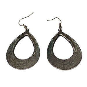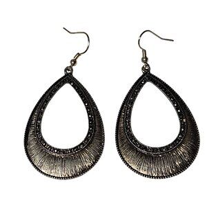 Elegant Teardrop Silver Tone Dangle Earrings Textured Design Rhinestone Accents