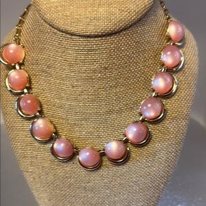 Elegant Thermoset Pink and Gold Necklace Vintage